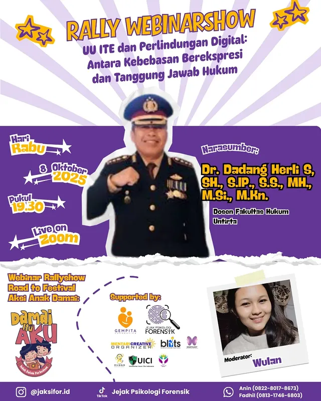 🚨Bebas berekspresi atau malah terjerat hukum?Mana batasan amanmu di media sosial? 🤔 Wajib tahu! Ikuti Rally Webinar Day-8 dengan topik krusial: UU ITE dan Perlindungan Digital: Antara Kebebasan Berekspresi dan Tanggung Jawab Hukum. 🎙️ Bersama pakar hukum multi-disiplin Dr. Dadang Herli S (Dosen FH Untirta) dan dimoderatori oleh Wulan Kita bedah tuntas hak dan kewajiban […]