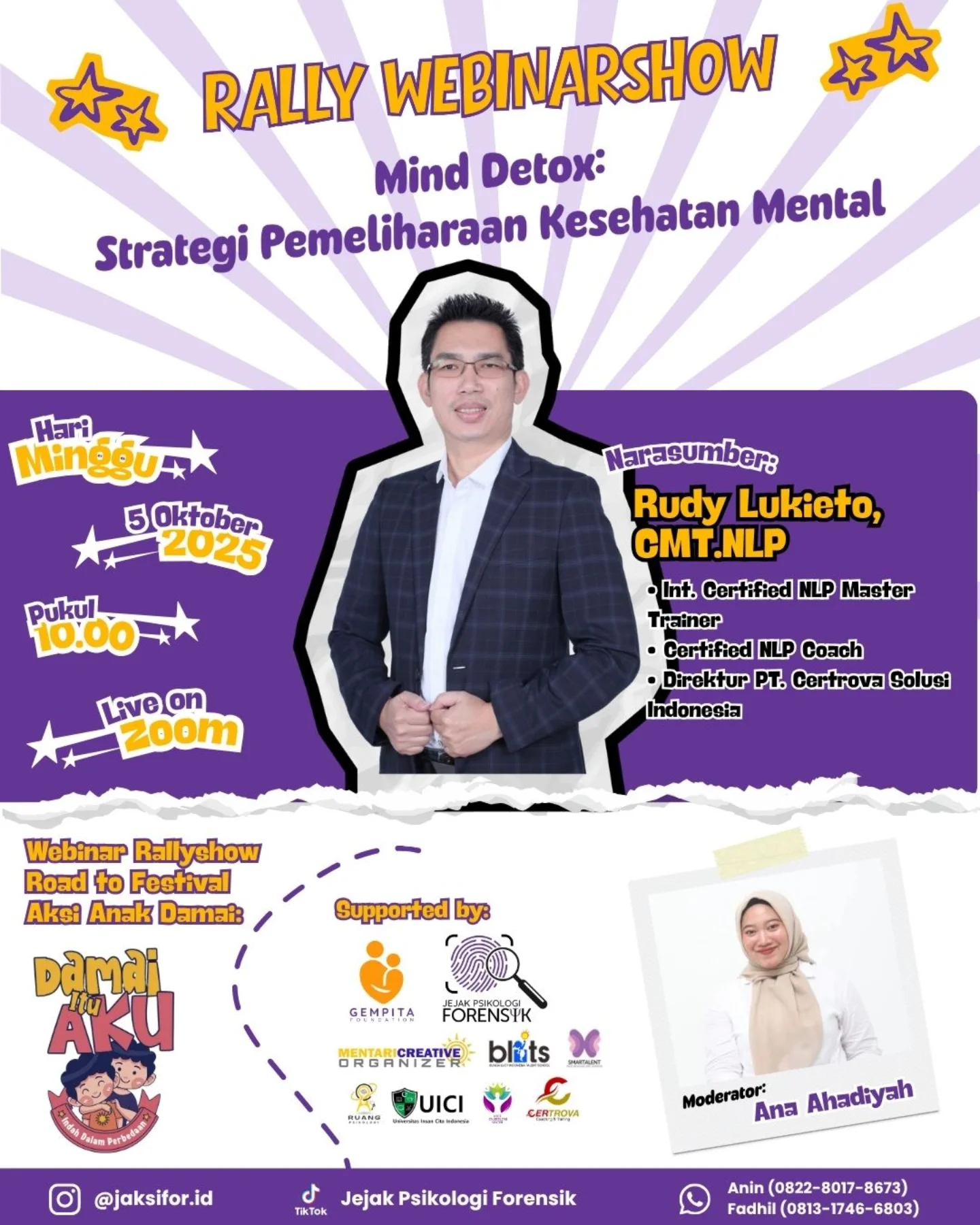 JejakPsikologiForensik #Jaksifor #JejakForensik #MindDetox #KesehatanMental #SelfCare #NLPCoach #PikiranPositif #WebinarGratis #SelfDevelopment